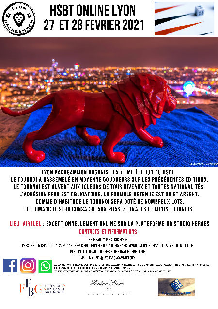 L’étape HSBT LYON 2021 se tiendra cette année en ligne les 27 et 28 février sur Heroes Backgammon Studio. Qui remportera la prochaine étape de l'Hector Saxe Backgammon Tour ?